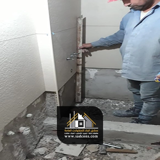 - معالجة التسريبات الجذري حيث يبدأ الترميم بفحص دقيق لشبكات السباكة المخفية، وتحديد مصدر أي تسريب مائي في الجدران أو الأسقف.